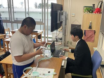 こちらも保健体育です。照度計を使って、教室や廊下の明るさを実際に測定しました。