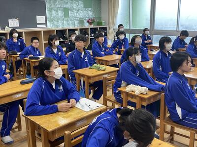 英語は自己紹介を多くの生徒と行いました。聞いているだけではなく質問を交えたりと活発に活動していました。