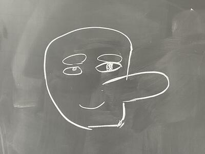鼻が長くて、眉毛が太くて...。でしょうか。なかなかの画伯ですね。