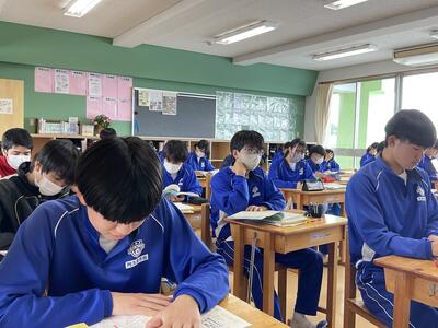 こちらは英語の授業です。ペアで音読練習をしています。なんかペアでやると楽しいですよね。