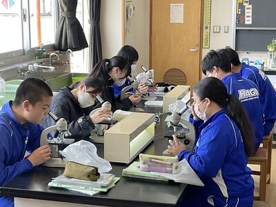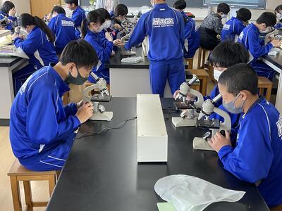 4組は理科の授業です。顕微鏡で観察をしていました。