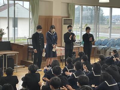 国語の授業では、筆者の考えをまとめて、発表していました。