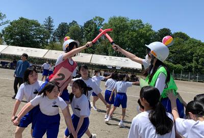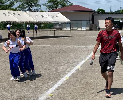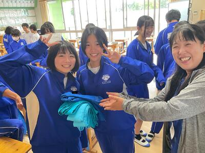 先ほどのムカデの紐は生徒に届けられました。「これで優勝目指して頑張るんだよー。」