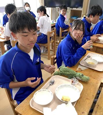 みんなでおいしい給食をもりもり食べて、グングン成長するのだ!
