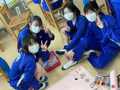 ここのクラスは体育祭に向けて寄せ書きをしています。イエイ!