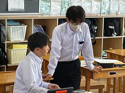 英語ではペア活動で会話の練習をしています。