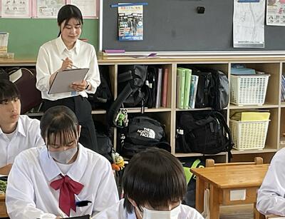 実習生が授業を見て勉強しています。
