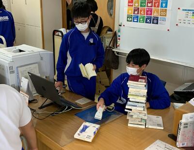 図書館では、係の生徒が、貸し出す本を受け付けていました。係の仕事をしっかり行なっています。