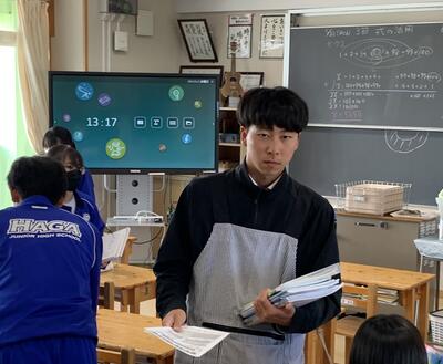 先生はプリントなどを配っていました。
