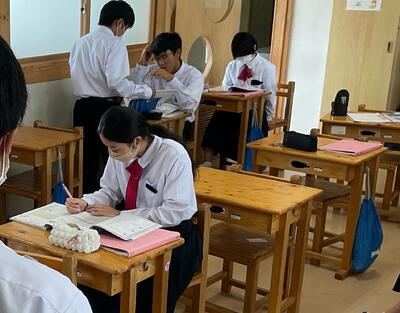 終わった人は、読めないところがある生徒に読み方を教えています。素晴らしいです。