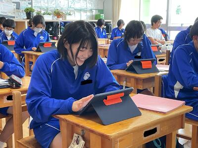 こちらのクラスもタブレットで英語の原稿を作ってます。