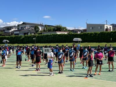 台風の影響により1日開始が遅れましたが、無事に晴れ、団体戦開始のための開会式が開かれました。
