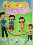 この活動は家庭の日(毎月第3日曜日)を広く知ってもらうために平成17年度から始めました。 夏休みの宿題の中で、町内の子どもたちに保護者と協力してポスターを描いてもらいます。作品は町内の施設(スーパー「リオンドール」、元気あっぷむら、中央図書館)に展示します。町内の親子ならどなたでも参加できます。