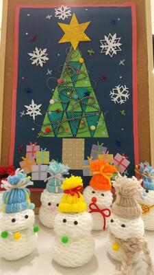 2学期も残りわずかとなりました。教育相談センターのステップ教室は21日が2学期最終日です。 「そよかぜ」「すくすく」は12月22日が最終日です。 年明けはステップ教室は1月10日から、「そよかぜ」「すくすく」は1月9日からスタートとなります。 写真の雪だるまは、ステップ教室の児童の作品です。マフラーを着けたり、帽子を混色にしたりと、どれも素敵な作品ができました。