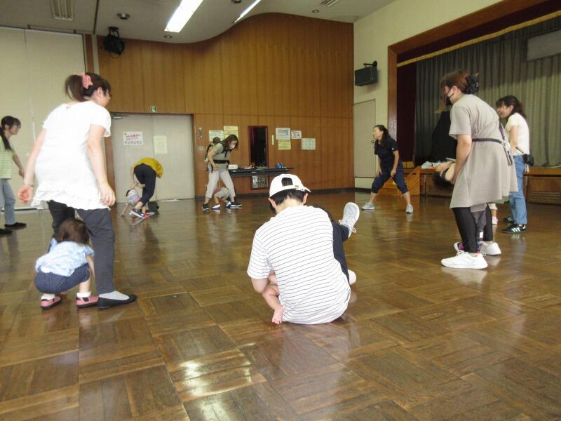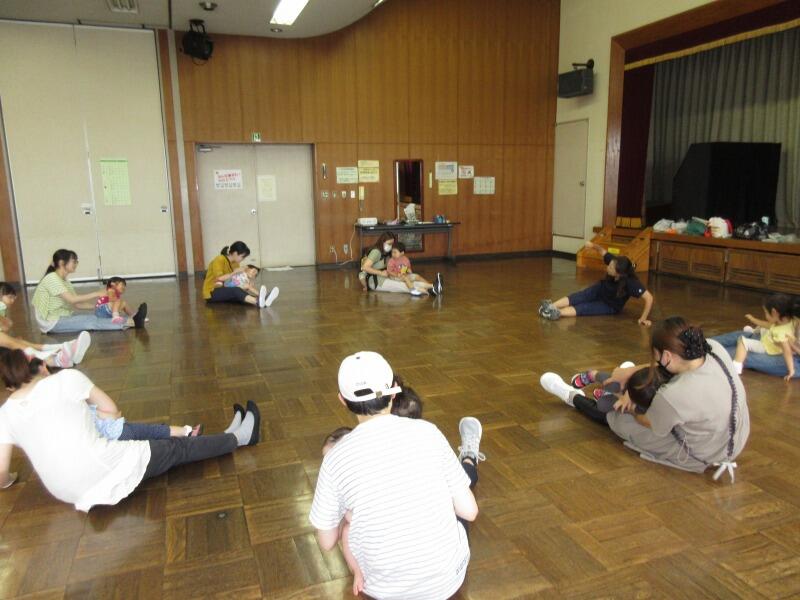 暑い日が続く中、粕壁南公民館に元気な子どもたちが集まりました。「みんな集まれ!親子ビクス」の開催です。