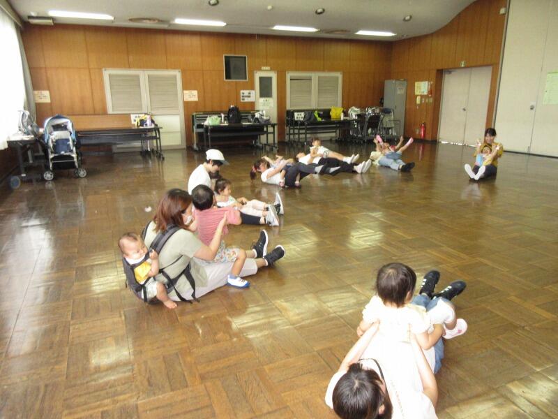 ゆらゆらさせたり、ぴょんぴょん跳ねさせたり、寝転がって腹筋をしたり、子どもは笑顔になり、お母さんには少しきついけれど、よい運動になりました