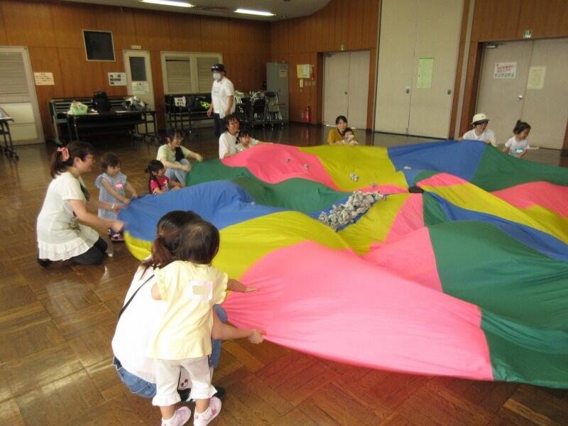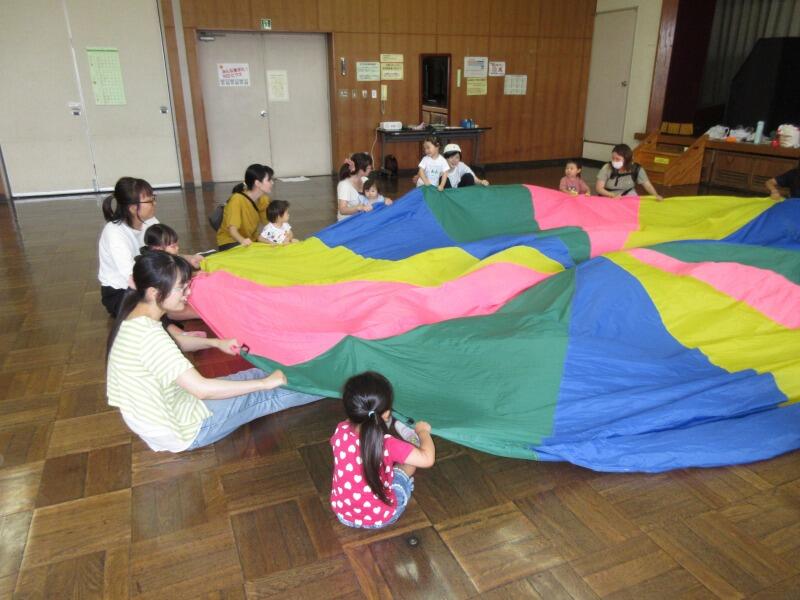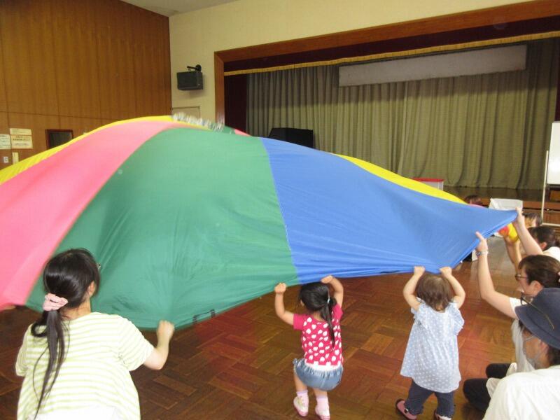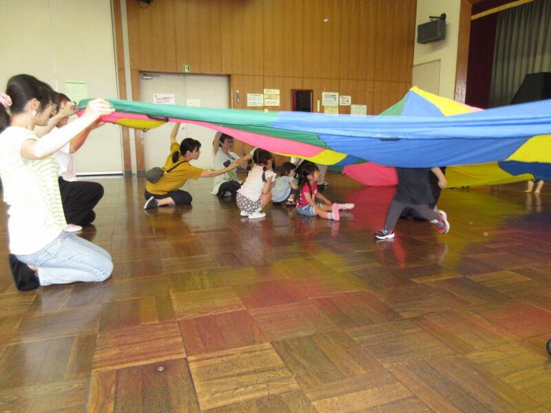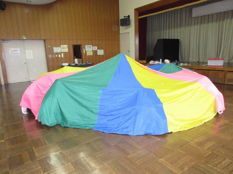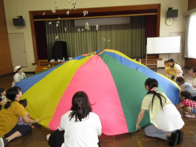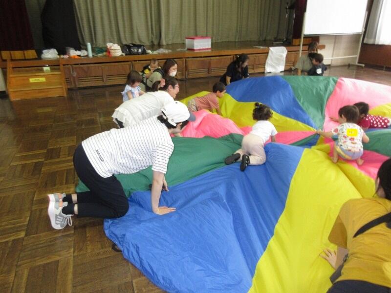 もぐったり、下を駆け抜けたり、お山にして登ったり、パラバルーンには遊び方がいっぱい。きゃっきゃっとはしゃぐ姿にこちらも元気をもらえます。
