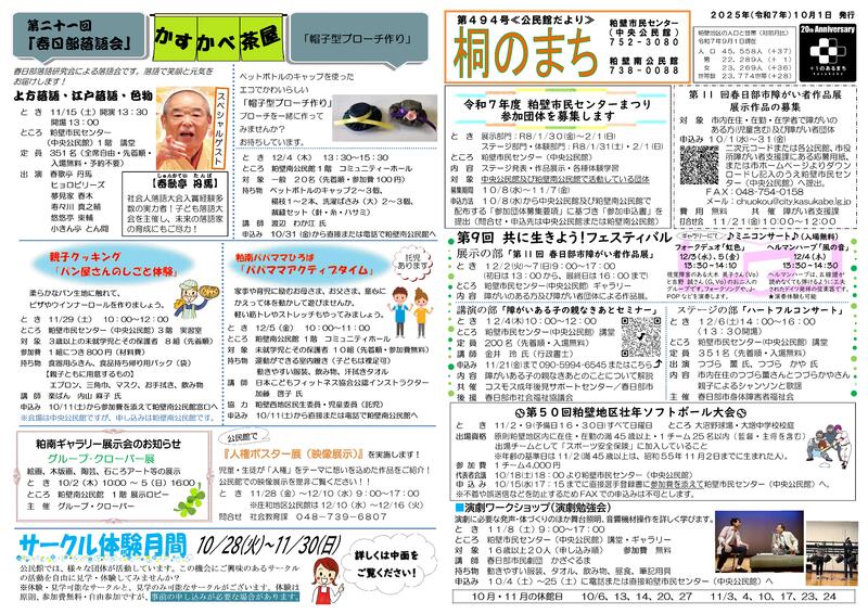 公民館だより第494号「桐のまち」(10月号)を発行しました。