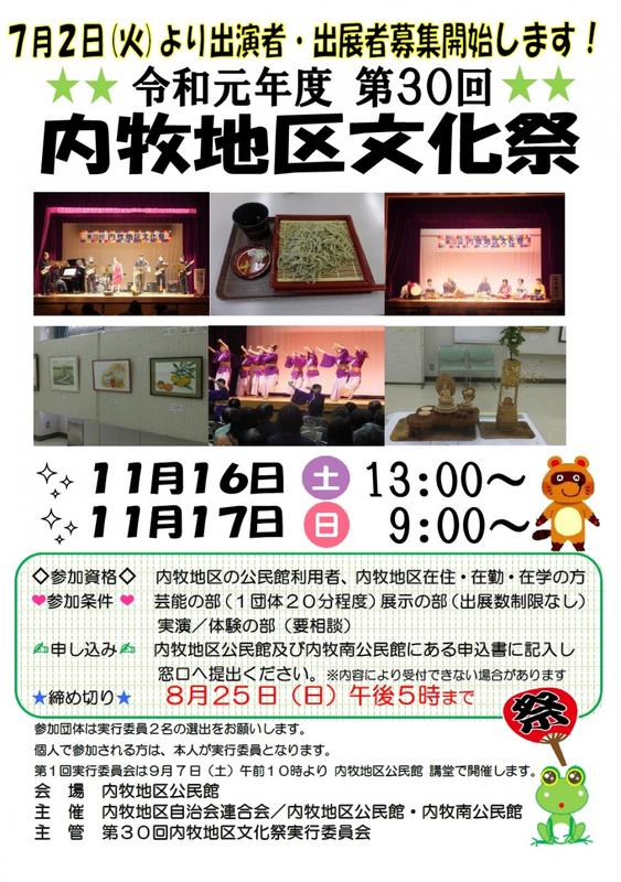 問い合わせ先:内牧市民センター(内牧地区公民館)