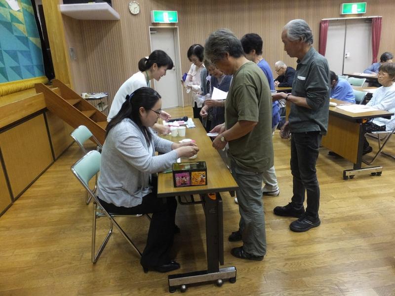 また、談話コーナーでは“裏千家茶道教室 栄町”の皆さんによる実演が行われ、1階のホールでは“食生活改善推進員協議会”の皆さんによる藤おこわ・スィートポテトの販売があり、とても賑わっていました。