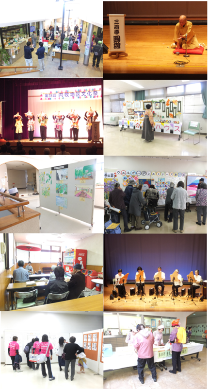 二日目の舞台発表は、楽器演奏・カラオケ・日本舞踊・民謡・詩吟・民踊・英語劇・ソーラン等さまざまなジャンルの団体に出演していただき、来場者はそれぞれのステージを楽しんで観覧していました。