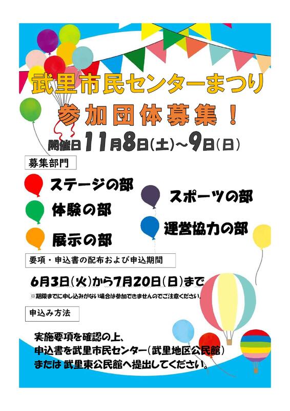 武里地区公民館・武里東公民館で活躍する団体の皆様、日ごろの成果を発表しませんか?