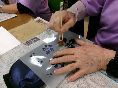 講師の大石昭子先生の指導のもと、来年の干支である卯(う)の押し花を貼り合わせていきます。ピンセットを使った細かい作業で、皆さん真剣な面持ちで取り組んでいただきました。