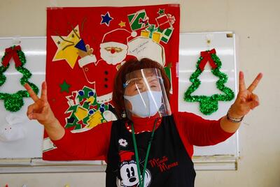 お部屋の装飾に使われている折り紙サンタは好評で、皆さん熱心に折られていました!