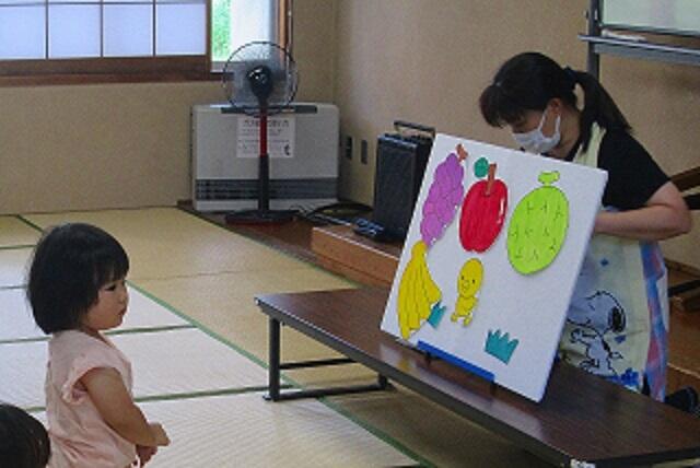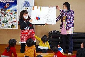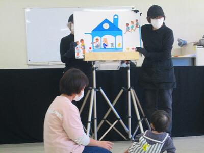 大型の絵本や紙芝居に子どもたちは釘付けです