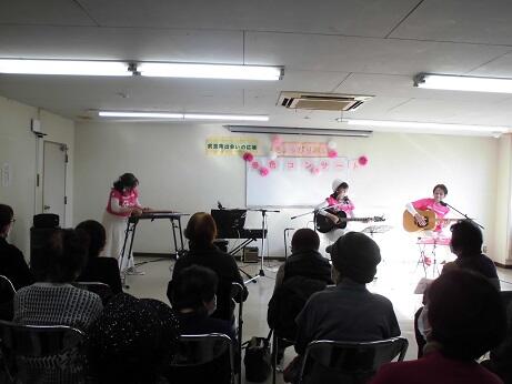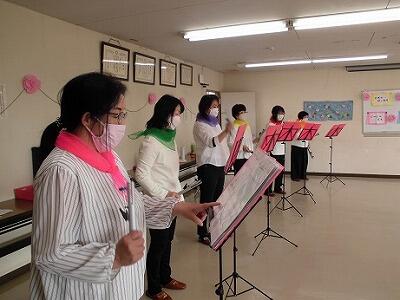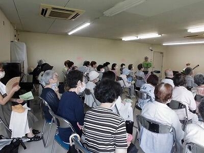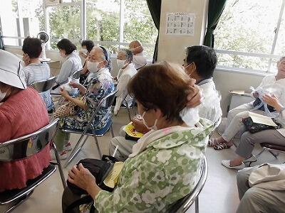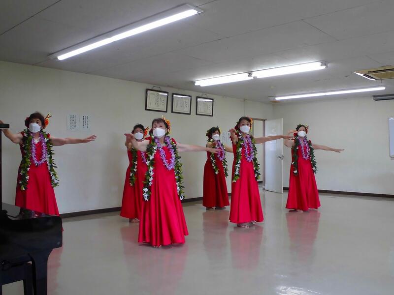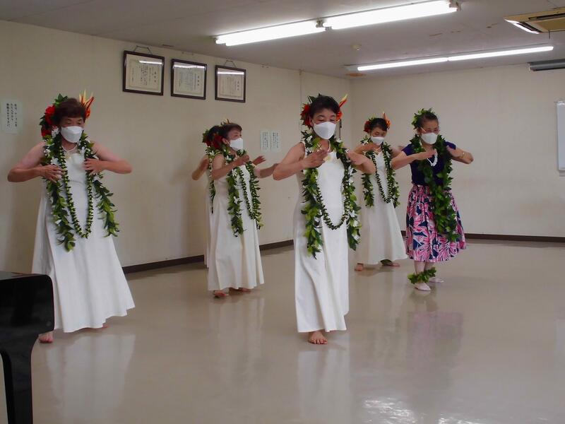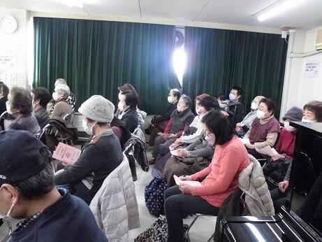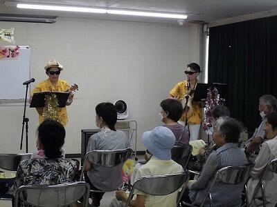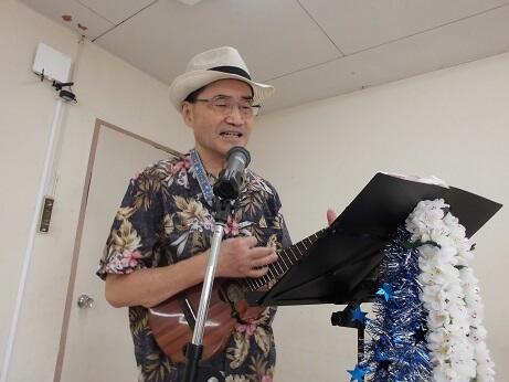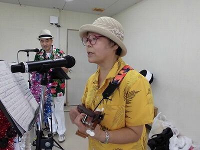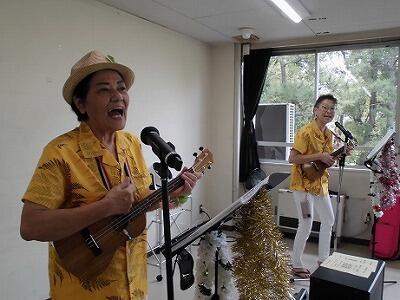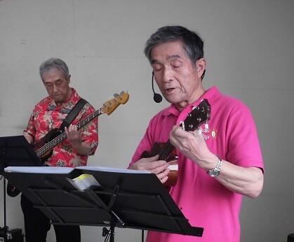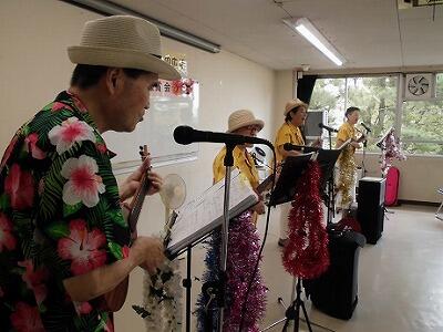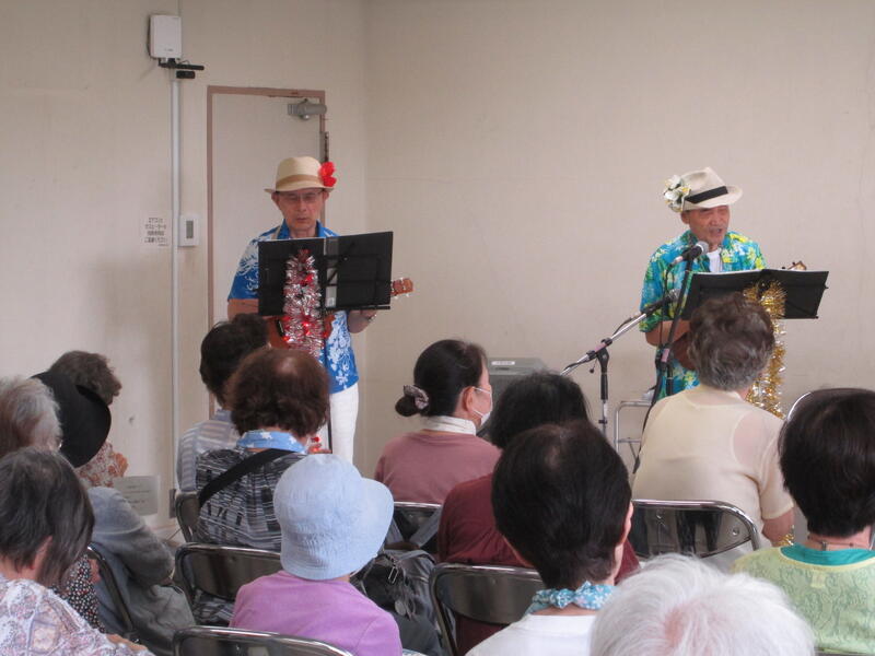 前列には女性7名、後列には男性5名の総勢12名で編成されました。昭和歌謡から懐メロ、ハワイアンの名曲まで幅広いレパートリーを演奏とコーラスで披露していただきました。