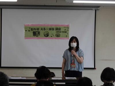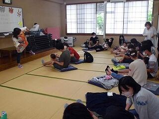 サークルの作った資料での講習です。 学生たちも後ろでスタンバイ