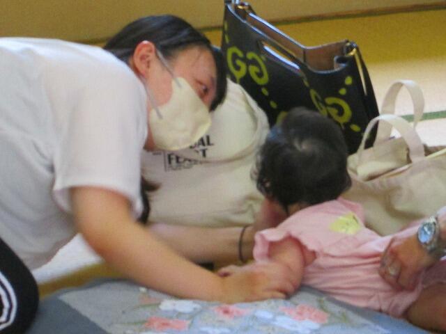 別の童歌では、ぬいぐるみのお手本に合わせてママのお膝でお馬さんごっここどもたちのかわいい笑顔がみれました