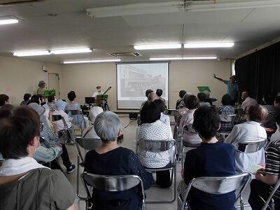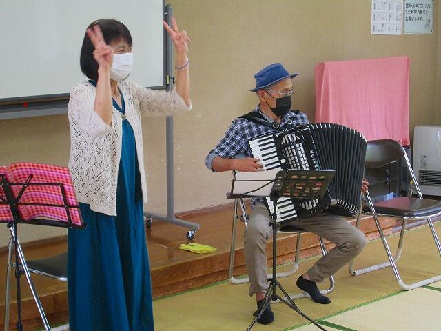 春日部アコーディオンサークルもといグランパーズのおふたり、武里図書館のみなさん