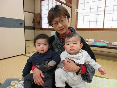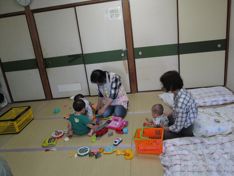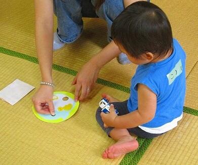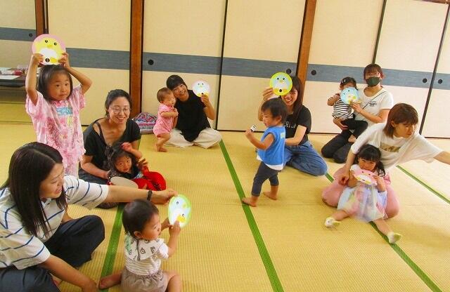 台風の影響で雨が降ったり晴れたりとあやしい天気の中、4組のちびっこが子サロに来てくれました