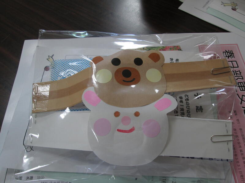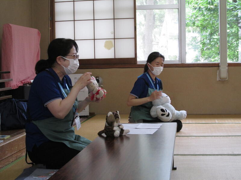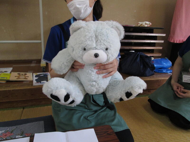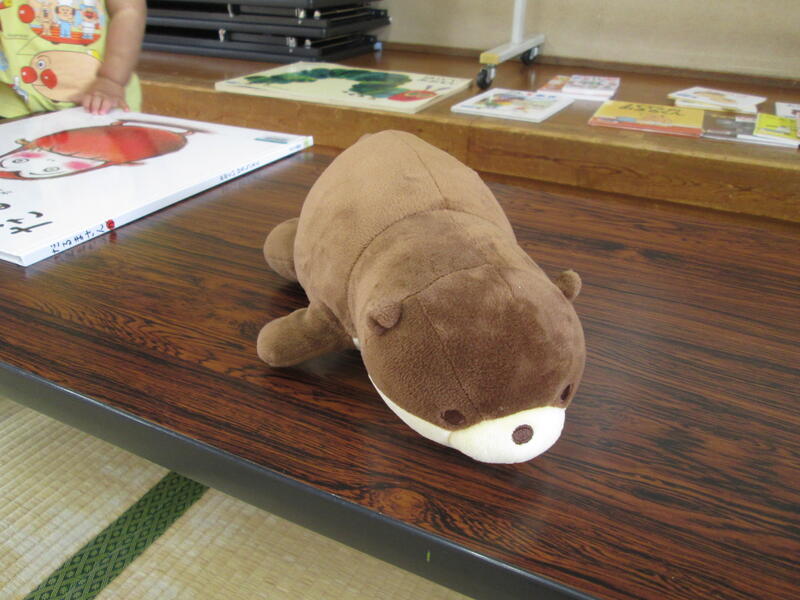 職員さんは大きなくまのぬいぐるみ、ちびっこはかわいいカワウソくんのぬいぐるみを連れてきてくれました。