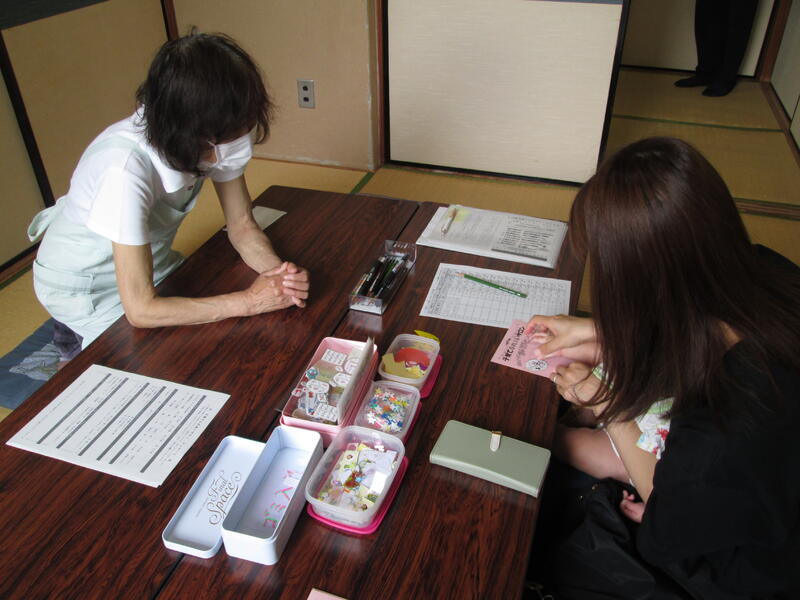 午前・午後の部とも参加者2名に学生が1名付き、それぞれ教えてもらいます。講習は静かだったのに、いざ各質問タイムに入ると賑やかやどり木の皆さんが丁寧、親切にわかりやすく説明してくれるのを、参加者は真剣に聞き入っています。