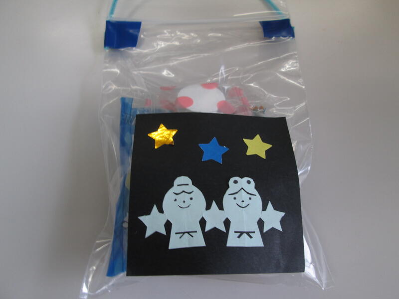 帰りにはお楽しみのおみやげです。7月は七夕。キラキラ星空で、彦星と織姫が仲良く皆さんを見てくれているのかな?