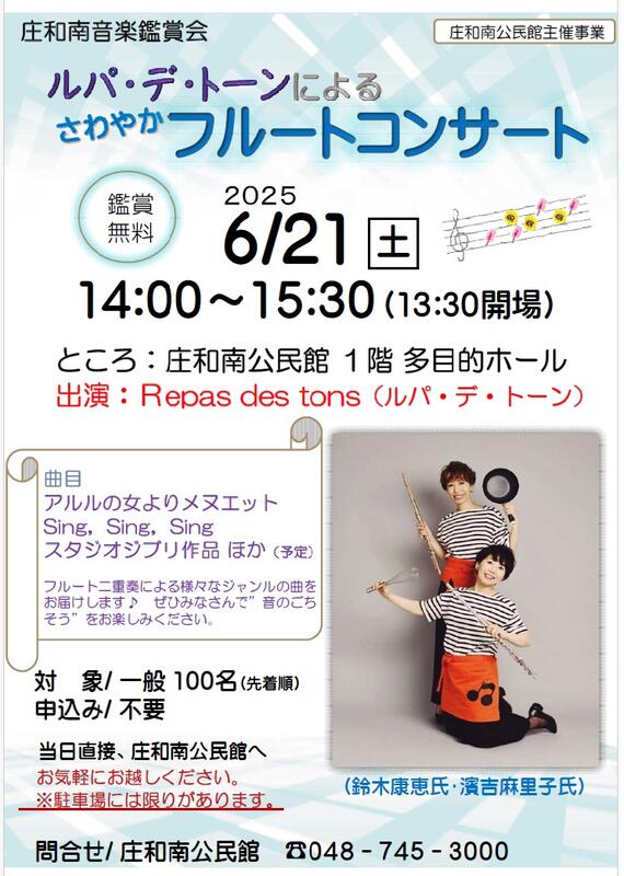 6月21日(土) 庄和南公民館 多目的ホールにおいて、ルパ・デ・トーンのお二人による