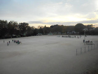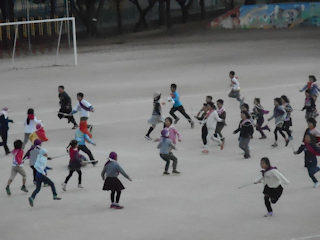 広い校庭でちゃんばらごっこです。