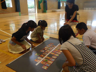 今回は、前半に2・4・6年生、後半に1・3・5年生に分かれてかるたを学びました。