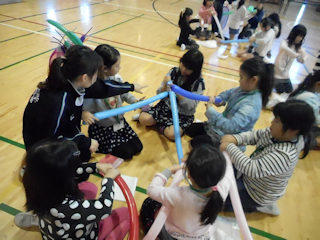 運動教室では「Sケン」と「障害物リレー」を行いました。
