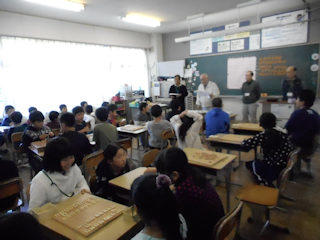 初めて将棋に挑戦する子たちは、先生に駒の動き方を教わります。