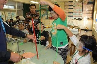 皆、興味津々に先生の実験を見守ります。