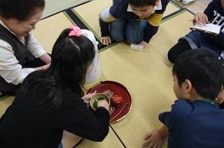 講師の先生にお茶を立ててもらった後、順番にお茶を立てます。