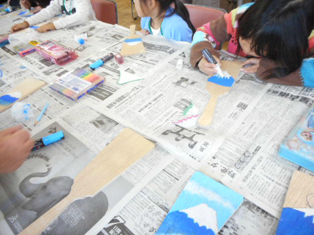 今日の放課後子ども教室では、羽子板絵付け体験とレクリエーションを行いました。
