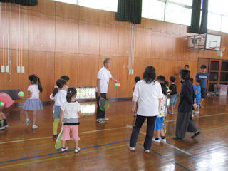 児童達も先生の早い球に負けず、するどいサーブを決めていました!
