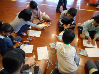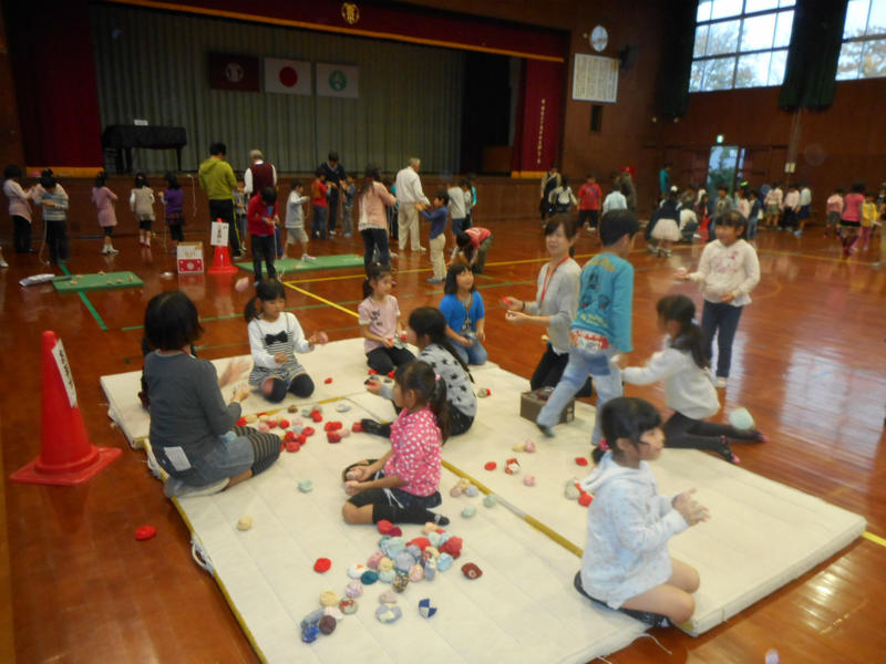 児童たちはボランティアの方々に教わりながら楽しく遊ぶ事ができました。