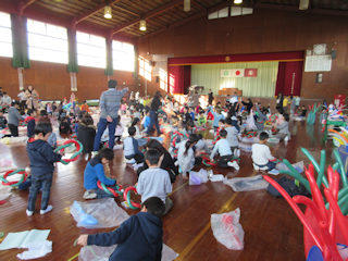 体育館を会場に風船でクリスマスリースや雪だるまを作りました⛄