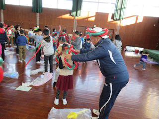 雨のため運動場が使えなかったので、遊びの種類が少なくなりましたが、譲り合いながら体育館で楽しむことができました。