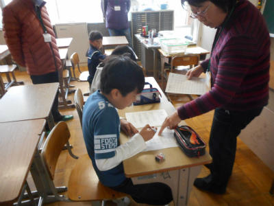 ボランティアの先生に、勉強を教えてもらいました。終わってからは、体育館でみんなでゲームをしました。1年間ボランティアの方々ありがとうございました。